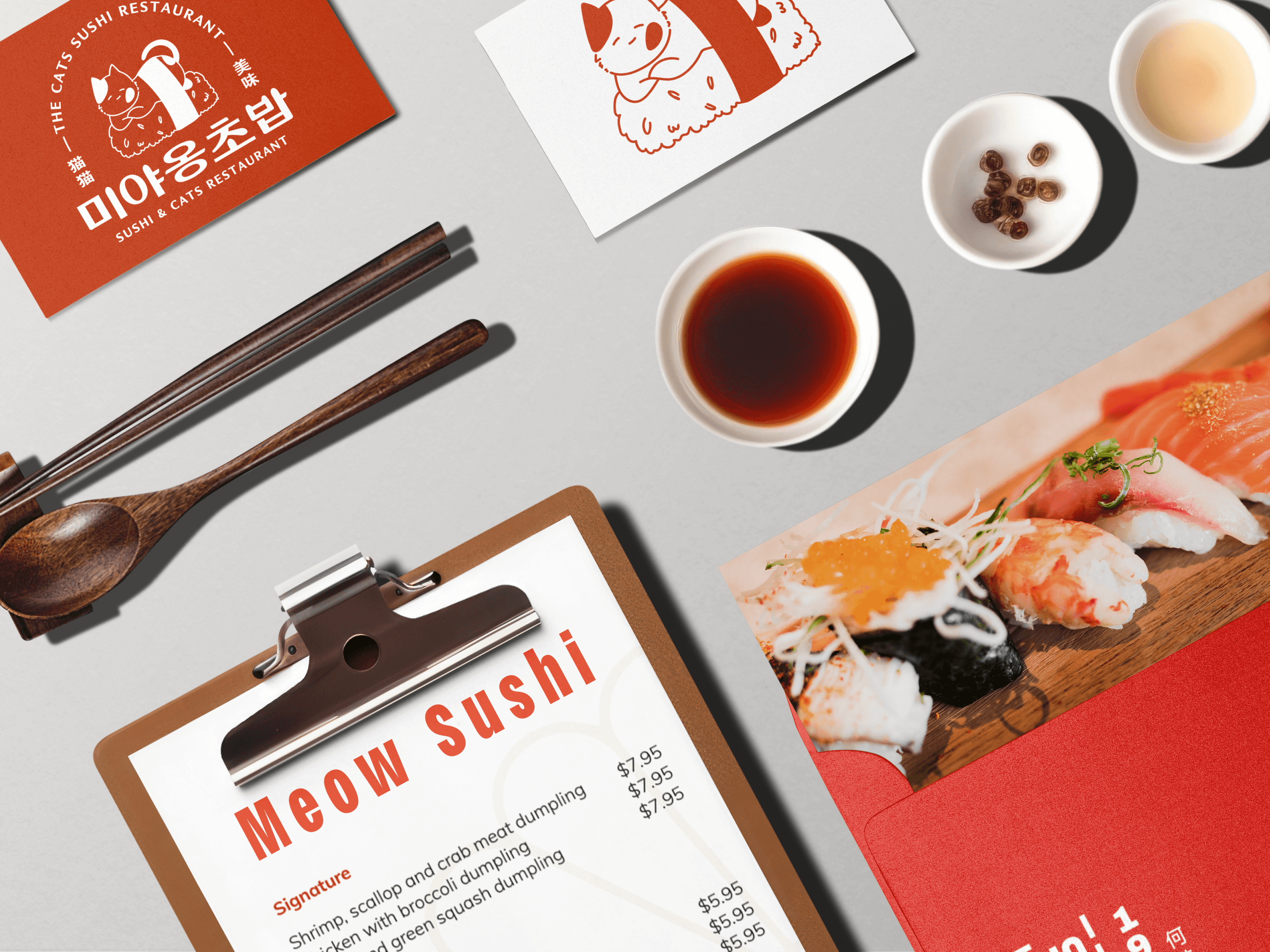 로고 시그니처는 기존 미야옹초밥의 컨셉이 변하지 않고